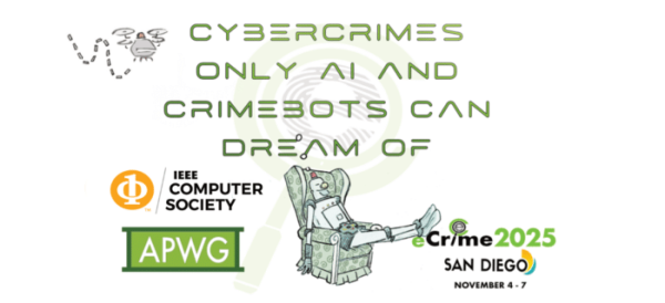 The 2025 Symposium on Electronic Crime Research (eCrime 2025) in San Diego on November 4-7 will examine essential factors for managing the impacts of the global cybercrime plexus to secure IT users, commercial enterprises, governments, critical infrastructure, and operational technologies. eCrime 2025 will be the 20th annual peer-reviewed, publishing symposium hosted by APWG.
